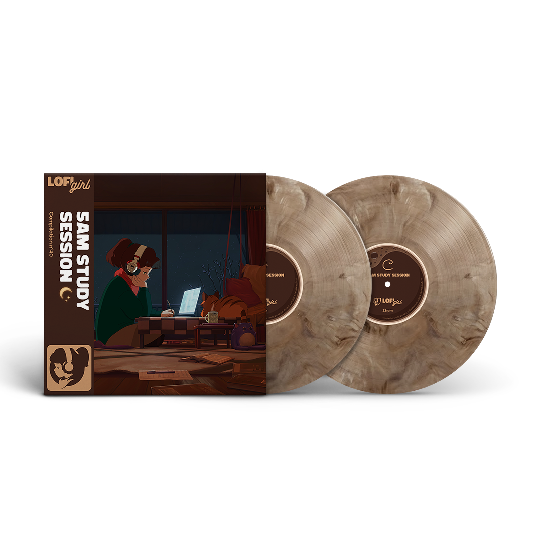 The physical edition captures the warmth of a fresh cup of coffee: pressed on double "Morning Latte" marble vinyl, the swirling beige and brown tones mirror the cozy, studious atmosphere of the artwork. A tangible reminder that the best work often happens when the world is still.