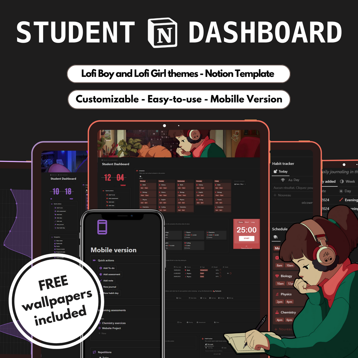 Effortlessly manage your academic life with the Lofi Student Planner, a beautifully designed Notion template crafted for students of all levels. Whether you’re tackling daily tasks, tracking your goals, or planning study sessions, this all-in-one dashboard helps you stay focused and motivated — with that signature Lofi calm.