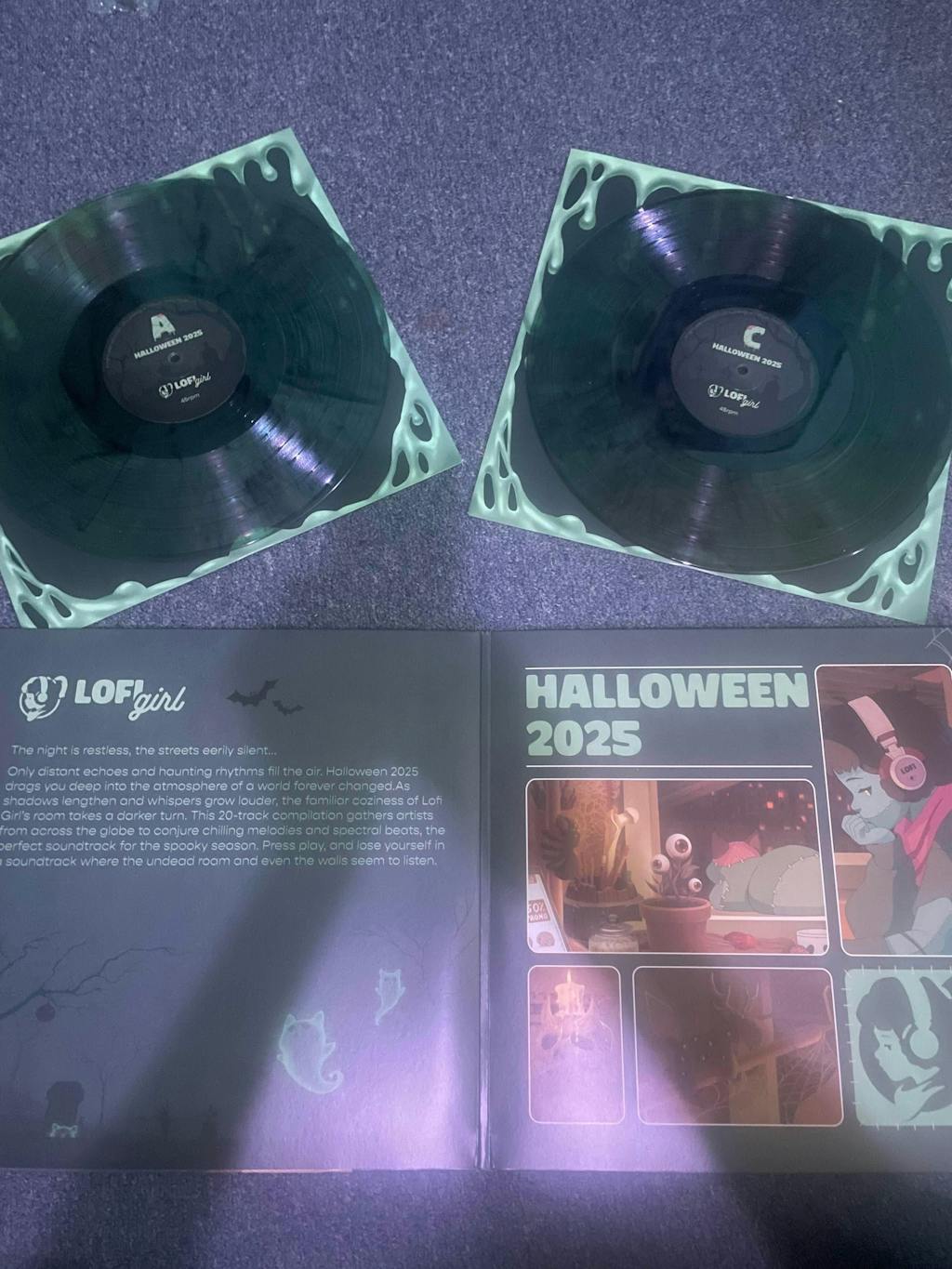 The halloween 2025 vinyl turned out to be perfect to keep forever in my collection! Considering I was playing the live stream in the hospital giving birth to my first born! When my son is old enough I'll pass it down since he was born hearing lofi girls music coming into this world. Thank you so much. ♡