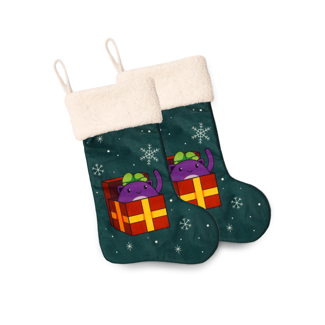 Bring a dash of holiday warmth to your home with this set of two cozy Christmas stockings featuring the adorable Mochi! Crafted from soft, high-quality fabric and adorned with a festive Mochi motif, these stockings capture the magic and comfort of the season.