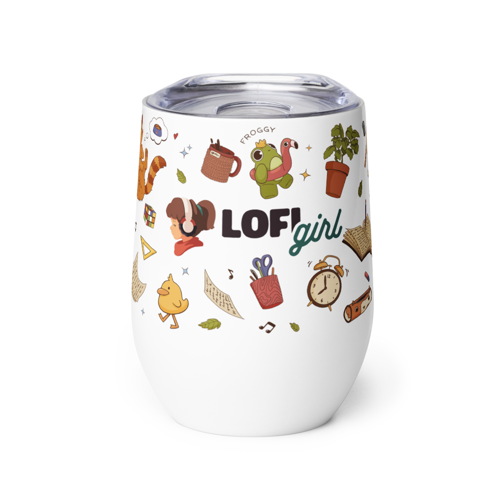 Bring colorful vibes to your daily rhythm, whether you're sketching in a café or rushing between classes. Adorned with an intricate, all-over doodle wrap, this tumbler features the iconic characters of the Lofi Girl universe, from the Chilled Cow to sleeping kittens, making it a true piece of art for your desk or bag.